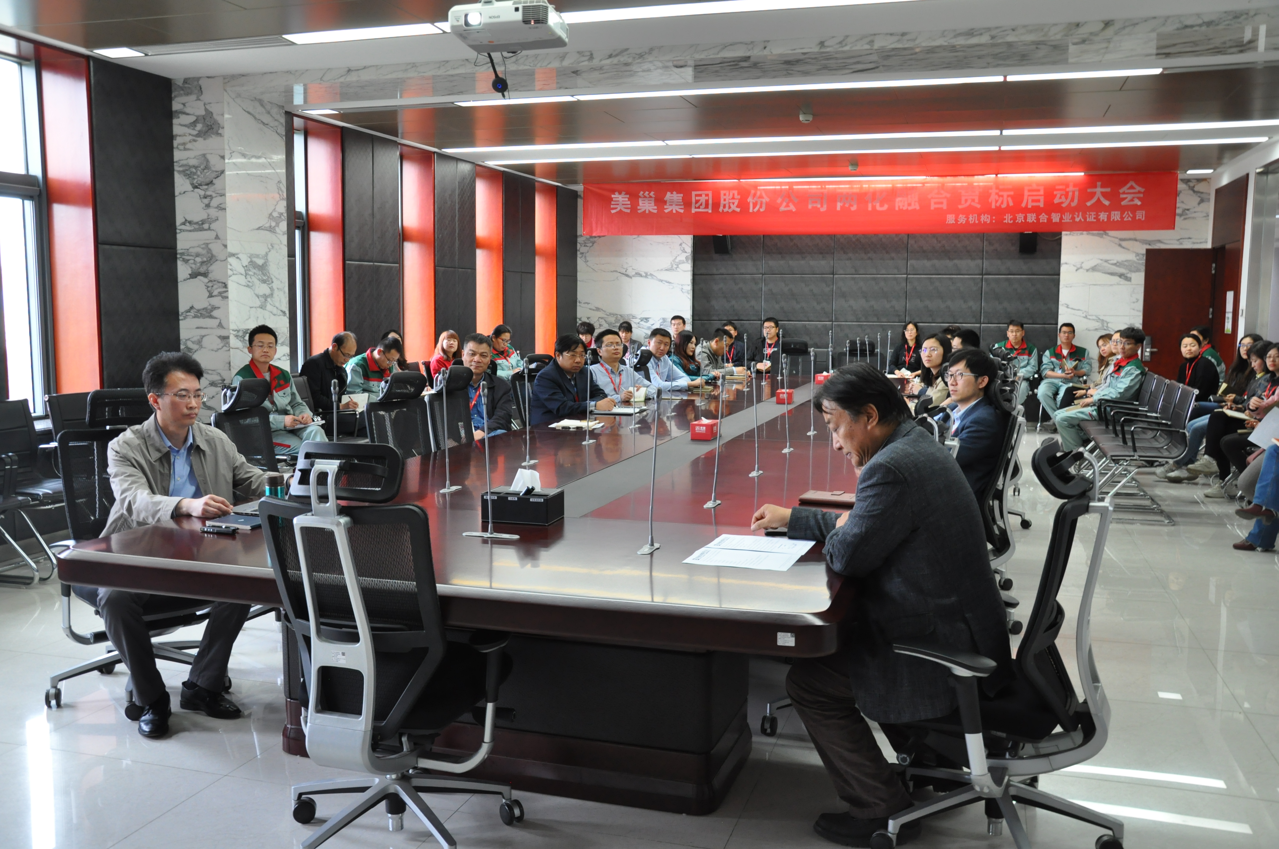 2019年4月18日下午,美巢集團(tuán)組織召開了兩化融合管理體系貫標(biāo)啟動大會。董事長張經(jīng)甫、相關(guān)業(yè)務(wù)領(lǐng)導(dǎo)及貫標(biāo)推進(jìn)小組成員近40人一同出席會議。會議由總裁辦負(fù)責(zé)人田堅(jiān)主持。