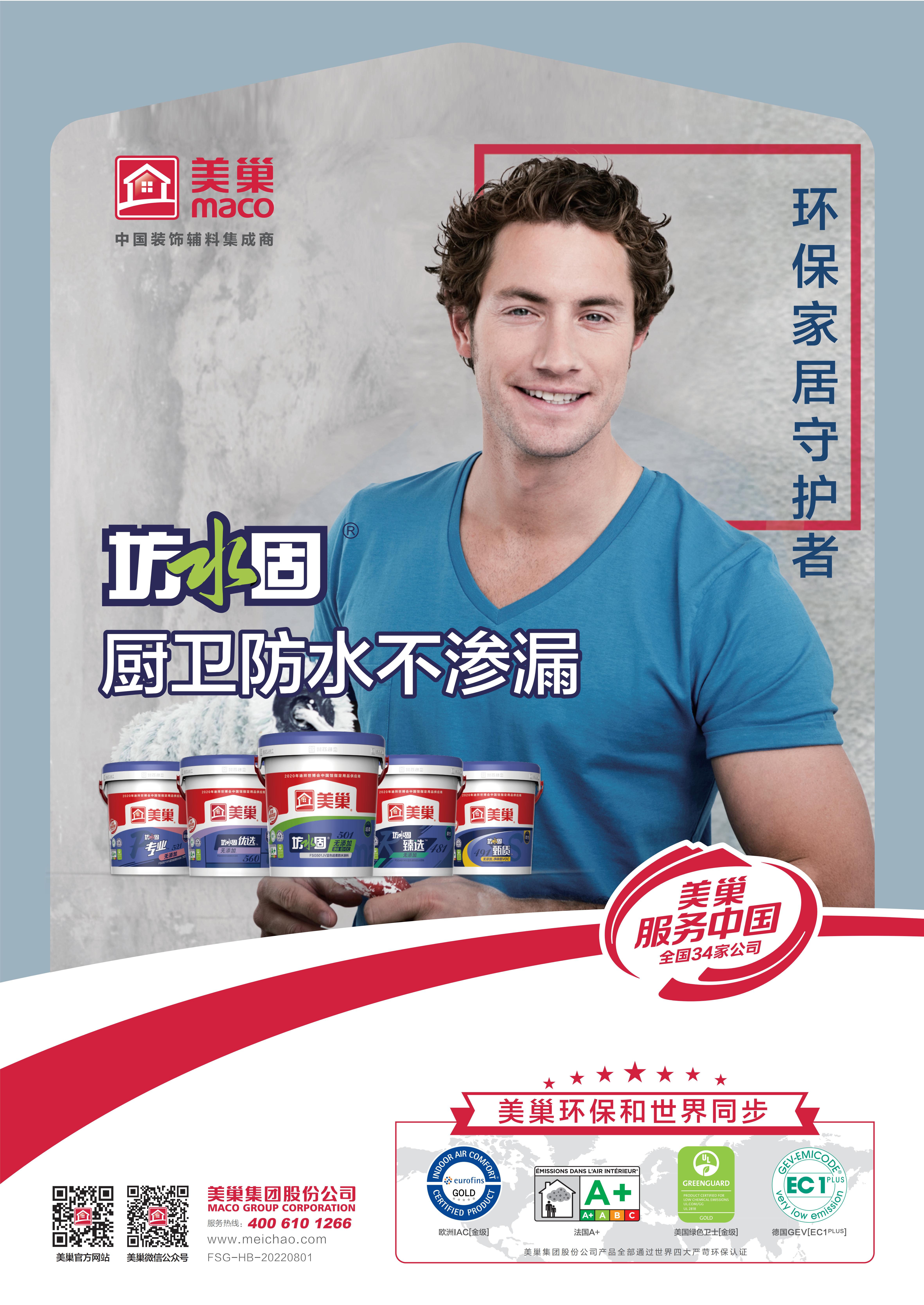 美巢坊水固是美巢推出的家裝防水產品,從生產到檢測環節,嚴格把控產品質量,堅守“品質超越平凡、環保同步世界”的品牌核心價值,產品全部通過美國 UL GREENGUARD 綠色衛士金級、德國 GEV EMICODE EC1PLUS、歐洲歐陸 IAC 金級以及法國 French A+級標準。