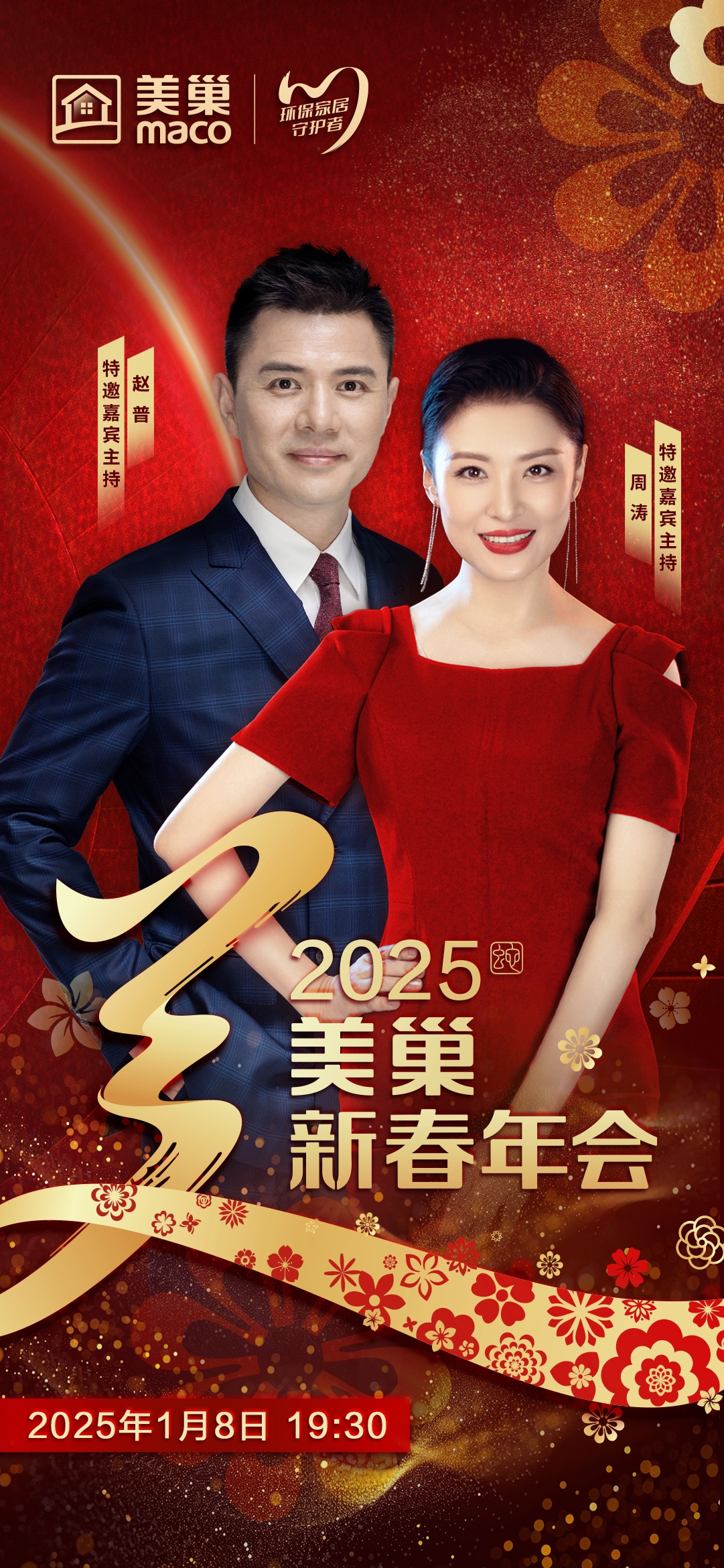 龍年已展千重錦,蛇歲再登百步樓,美巢希望通過一期一會的新春年會讓美巢的合作伙伴們、美巢的同事們及家人們共享美好,感受團(tuán)聚的喜悅、企業(yè)的承諾與品牌的力量。1月8日19:30,讓我們共同期待美巢攜手周濤、趙普為您奉上的“2025年美巢新春年會”。