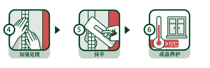 | 施工事項: | 修補寬度控制在2mm以上,抹灰厚度控制在2mm~3mm之間。攪拌后的膠漿要一次性用完,避免硬化浪費。 |