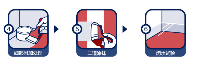 | 施工方法: | 施工質(zhì)量配比為A液料︰B粉料=1.40︰3.10,將液料倒入桶中,再緩慢加入粉料,攪拌成均勻無結塊的漿料,靜置2~3分鐘,再攪拌1~2分鐘。用工具涂刷2~3遍,涂層厚度應均勻,不得有漏刷或堆積現(xiàn)象,前后兩遍的涂刷方向應相互垂直,應在前一遍實干后再涂刷下一遍。單層涂刷厚度不超過1mm,涂膜過厚,會導致干燥時間長,涂膜防水可靠性下降。細部節(jié)點應采用網(wǎng)格布加強涂刷。攪拌的防水漿料須在1小時內(nèi)用完。待涂膜完全干燥48h后方可進行閉水試驗。 |