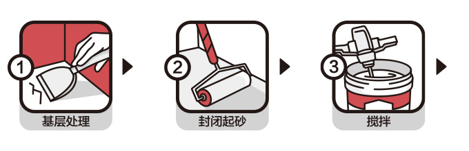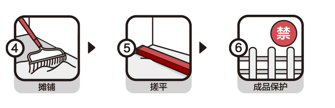| 基層處理: | 地面須堅實、無明水、無浮灰與污物,地面疏松或起砂需用地錮地面界面劑或墻錮混凝土界面劑進行封閉處理,界面劑表干后即可施工。 |