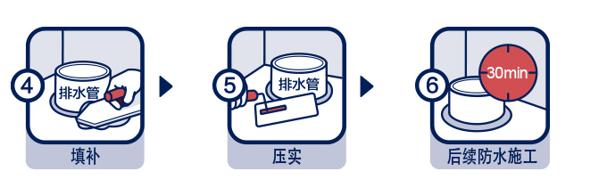 | 基層處理: | 基層應堅實、無灰渣、無浮灰、無明水,地漏和管道根部無銹跡和灰渣。 |