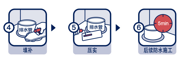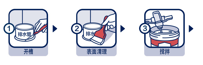 | 基層處理: | 基層應堅實、干凈、無油污、無灰渣,管道根部應無污物、灰渣或銹跡。堵漏施工前應先將漏水點或漏水縫鑿成寬度與深度均為1~2厘米左右的凹槽或燕尾槽,并清理干凈槽內松散的碎渣。 |